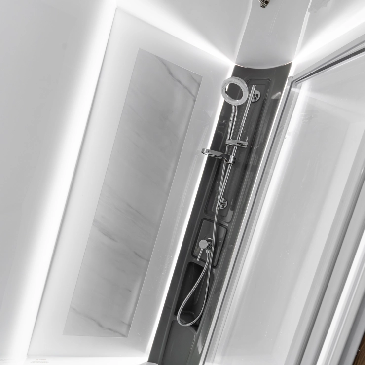 • Luxurious fully lined domestic style shower cubicle and screen with LED Lighting and Riser soap dish