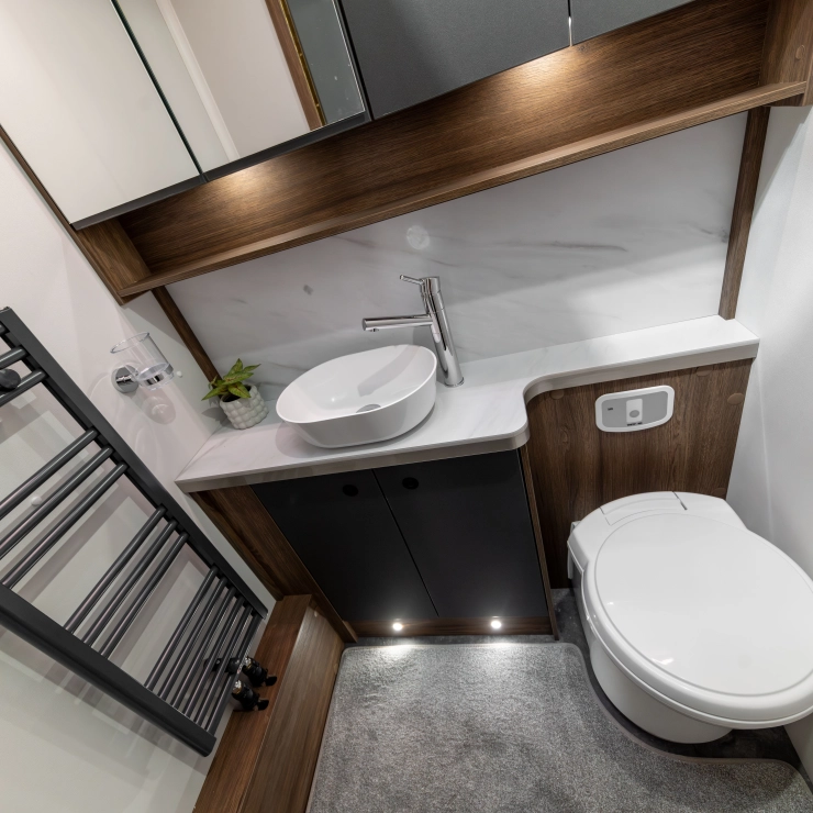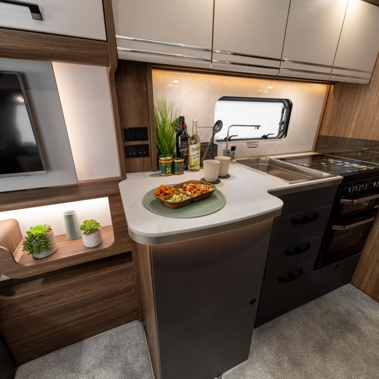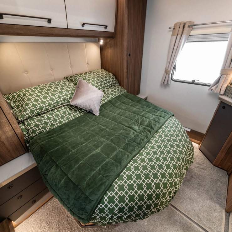 Erwin Hymer Group UK Ltd reserves the right to, and does alter from time to time, technical specifications, prices and model ranges as materials, model improvements and conditions require, and can accept no responsibility for discrepancies between these and subsequent models shown. The images and information on this page are for guidance purposes only. Please be sure to check our full current and technical specifications with your retailer before placing your order. Props shown are for photographic purposes only and are not included in the specification. Bed covers and additional scatter cushions shown are for demonstration purposes only, similar co-originating sets are available to purchase from Erwin Hymer Group Ltd retailer.